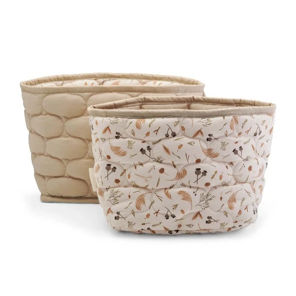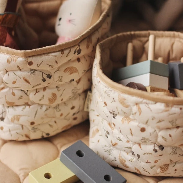 Introducing our charming small storage basket set – a must-have for your nursery, children’s bedroom, or bathroom. Keep your changing table organized with designated spaces for nappies, creams, and wipes, or bring order to the playroom by tidying up those little toys. Embrace a clutter-free home that radiates beauty, and enjoy the versatility of reversible baskets featuring our unique Grasslands print inspired by nature, with the option to roll the top down for a delightful mix of designs.