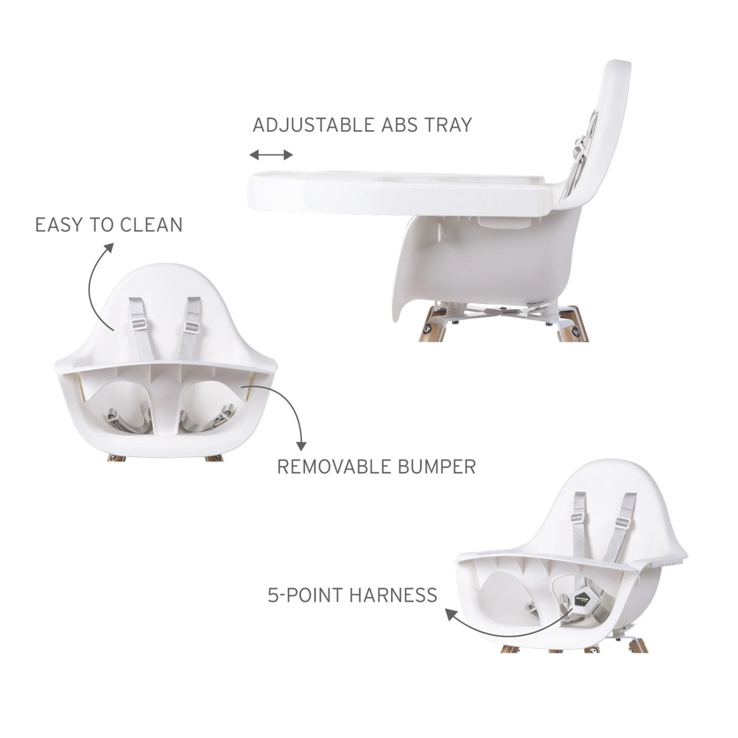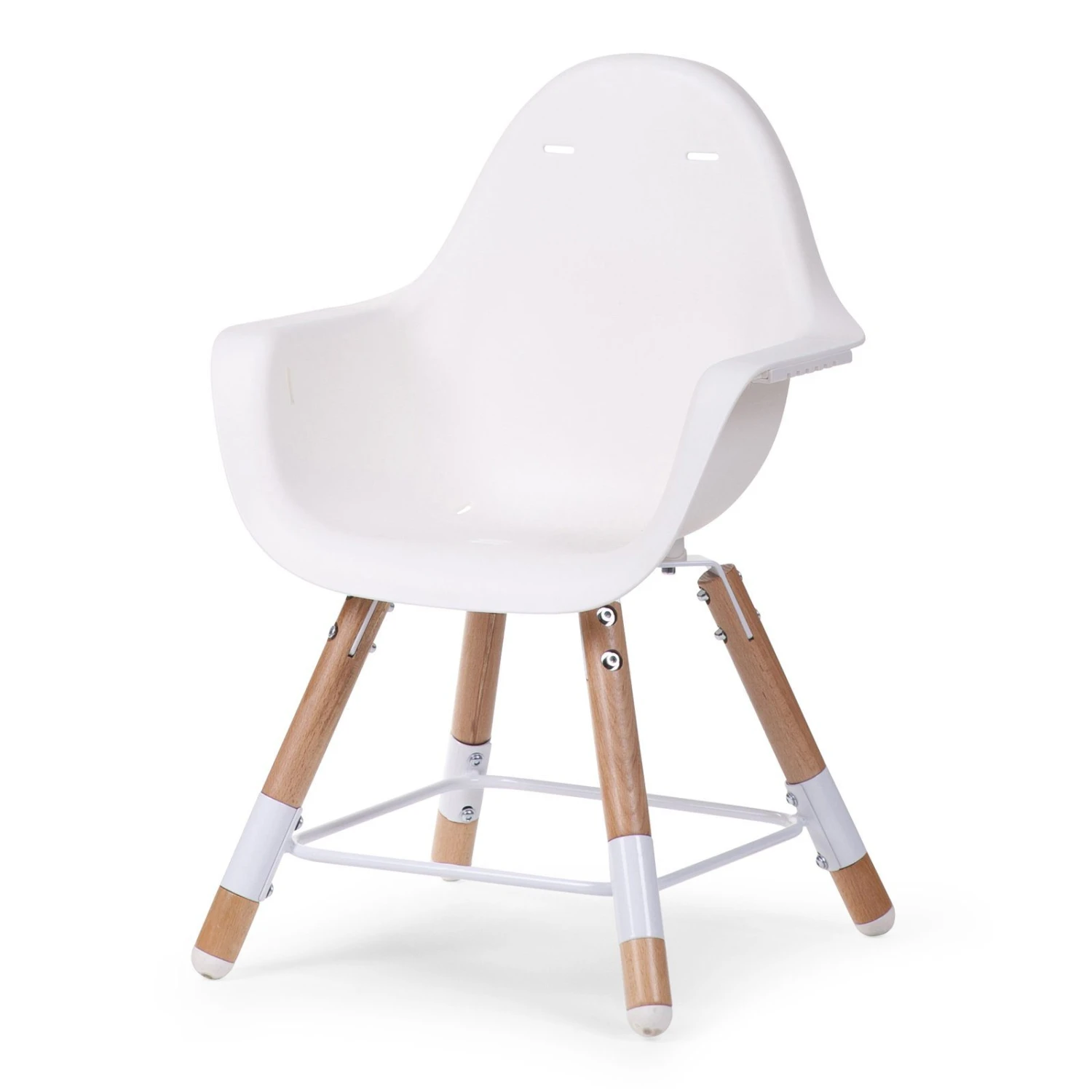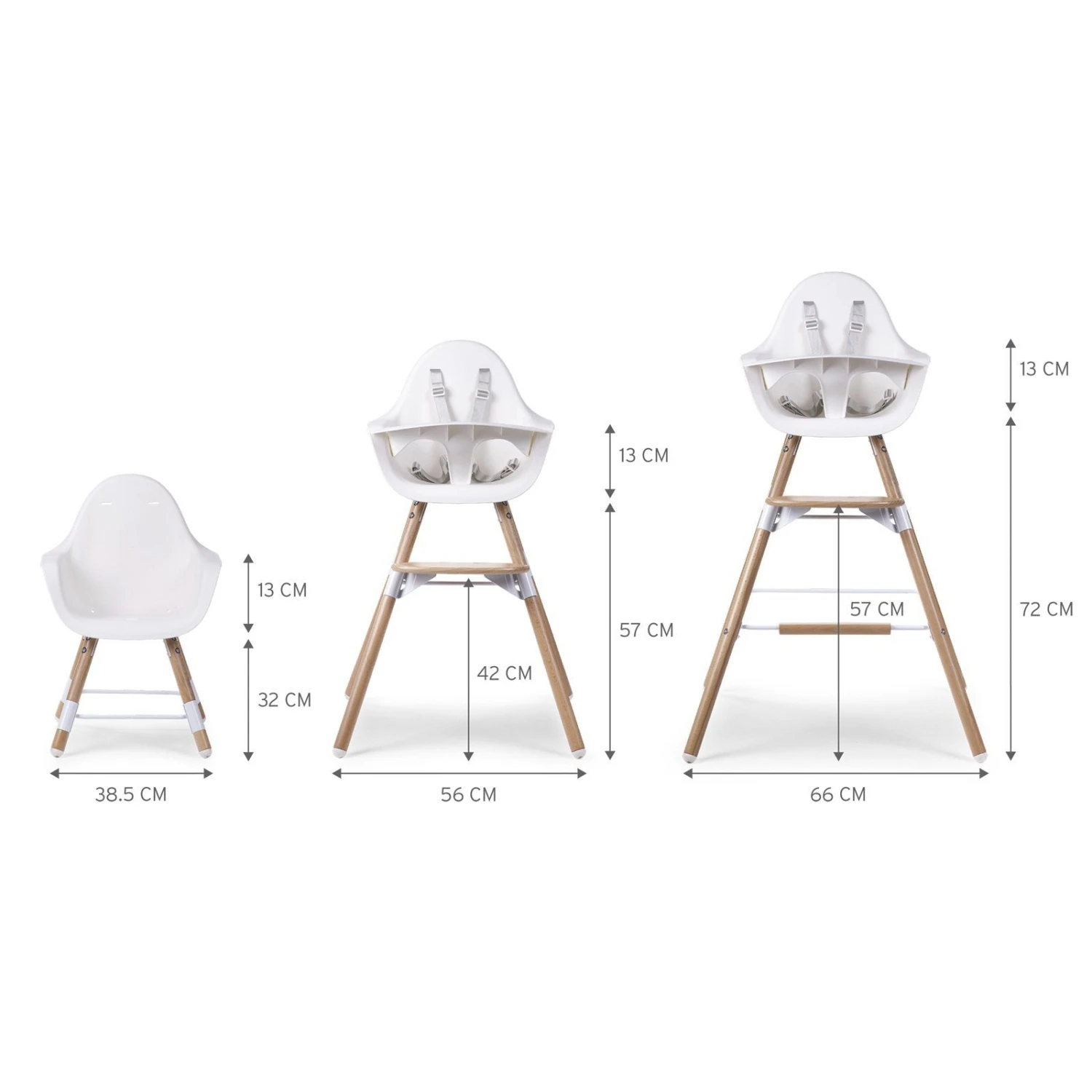 Designed perfectly it adjusts to 2 table heights, the standard eating table height of 75cm making dining easier as they can sit with you at dinner time as babies and then as they grow you can adapt it into a child sized chair for their own lower table.