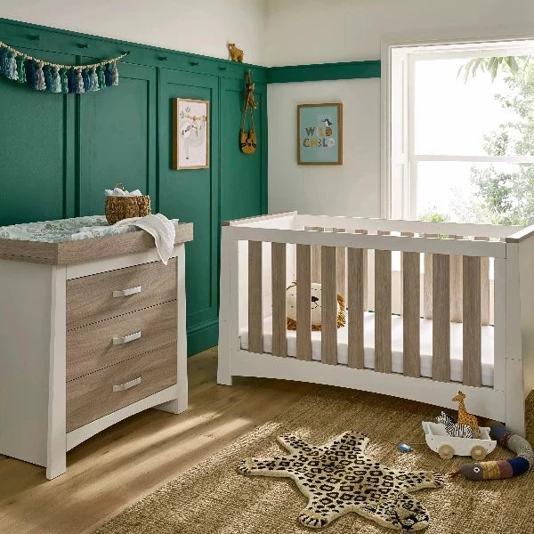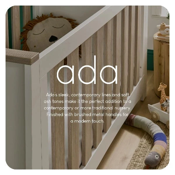 The Ada 2 Piece Nursery Furniture Set showcases beautiful soft ash tones and sleek, contemporary lines. This modern classic nursery set would look picture-perfect in both a contemporary and more traditional nursery.
