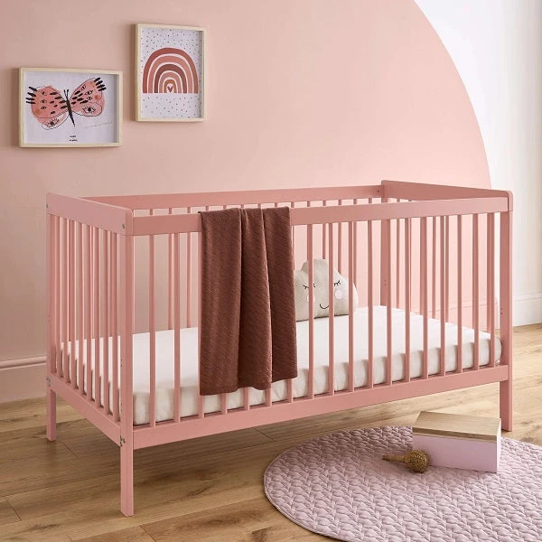 The Nola Blush Pink Cot Bed is a guaranteed focal point for your nursery with its bold use of color and contemporary design. Made of sustainably sourced pine wood, the Nola Cot Bed has a beautiful blush pink, baby-safe painted finish. Nola’s minimal design and blush colorway are perfectly suited to the modern nursery.