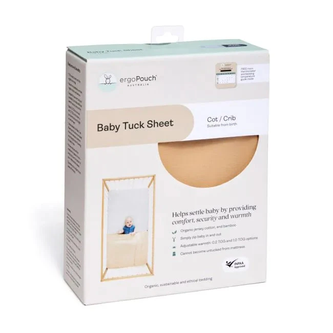 Introducing the ergoPouch Baby Tuck Sheet for a cot in wheat. This TOG-rated bedding is the perfect, safe alternative to traditional blankets for newborns. Designed to fit snugly over swaddles or sleeping bags, it offers extra security and comfort. With adjustable warmth levels due to TOG ratings on both sides, it ensures your little one stays cosy all night. Tested and approved by INPAA, it adheres to safe sleep guidelines, and even if your baby’s legs wriggle free, it stays flat on the mattress. Suitable from birth, it’s a secure and snug bedding choice.