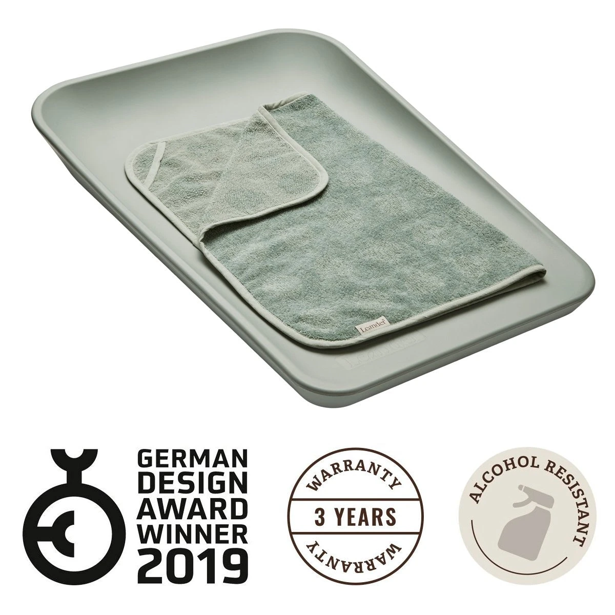 The Leander Matty Changing Mat is an all-in-one changing station. Whether at home or on the road these stylish and practical changing mats are unlike any other. Matty is made in a material that is soft to the touch, no need for a cover or towel. The surfaces are also all waterproof.