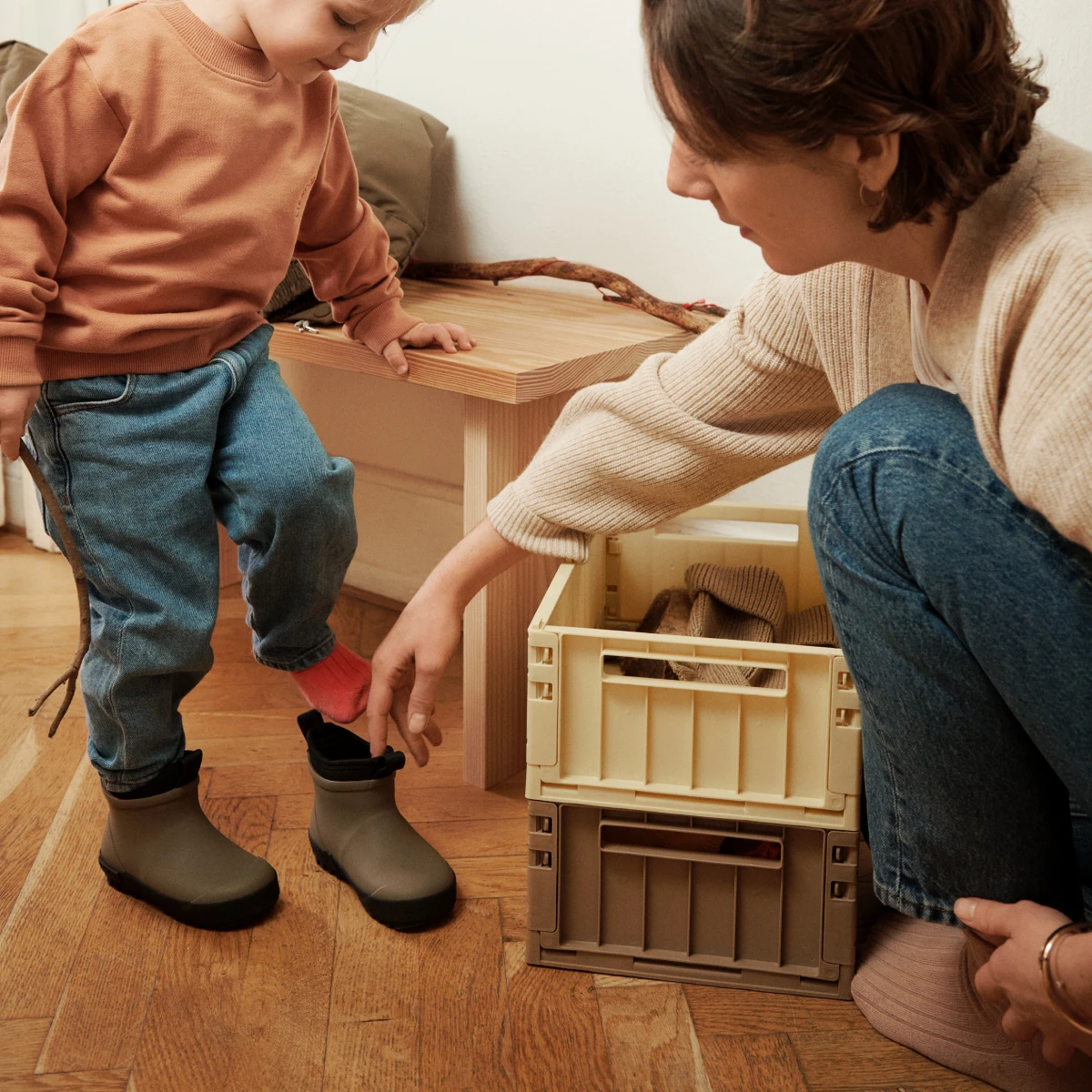 Restore some order with the Liewood Weston Small Storage Crate in Oat, ideal for organising the kids room, bathroom or worktable.