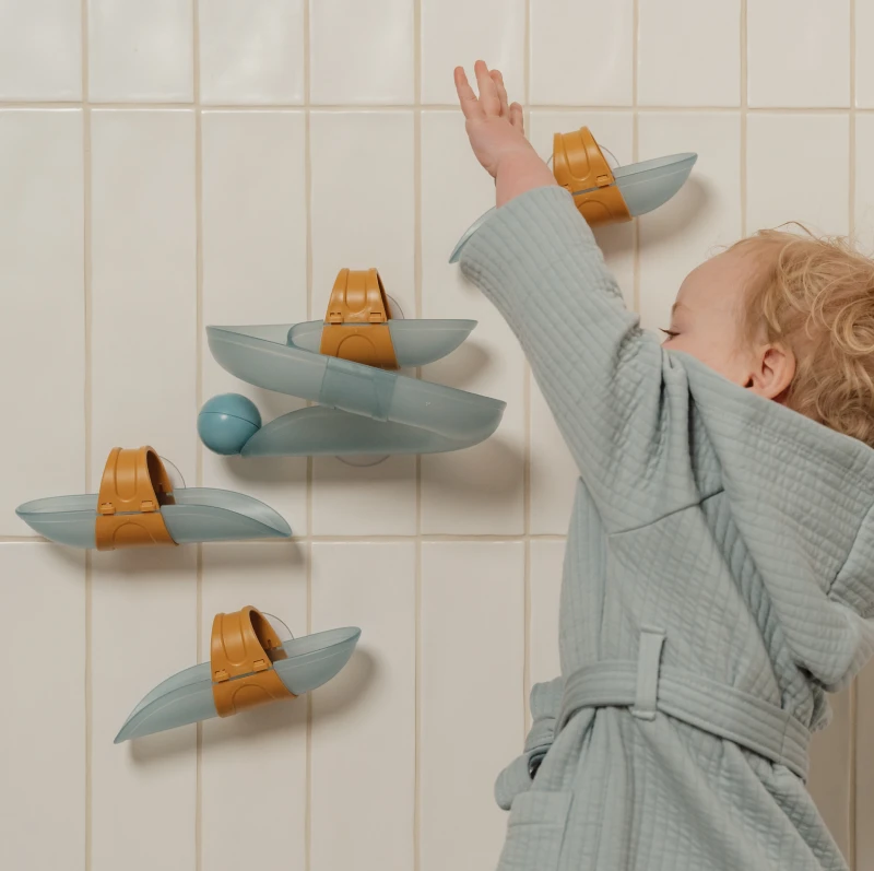 Transform bath time into a rolling adventure with our Bathtub Ball Track set! Simply set up the tracks on the bathroom wall, release the ball, and watch the splashes of fun unfold in the bathtub. The three blue tracks, equipped with suction cups, easily attach to and detach from the bathroom wall, offering endless course possibilities with their curved and straight shapes. Not only does this set provide great entertainment, but it also promotes fine motor skills and problem-solving during playtime.