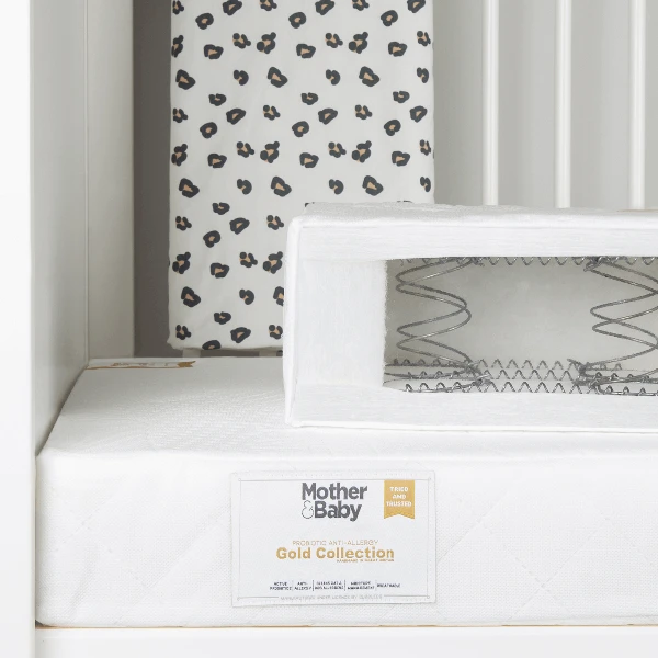 The Sprung Cot Bed Mattress has a movable waterproof membrane that sits underneath the cover and on top of the mattress base between the layers.