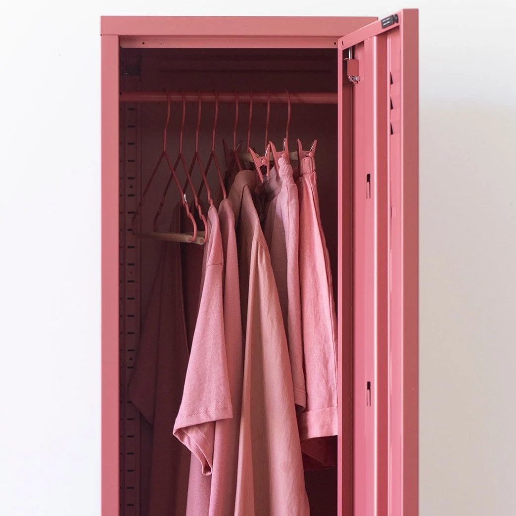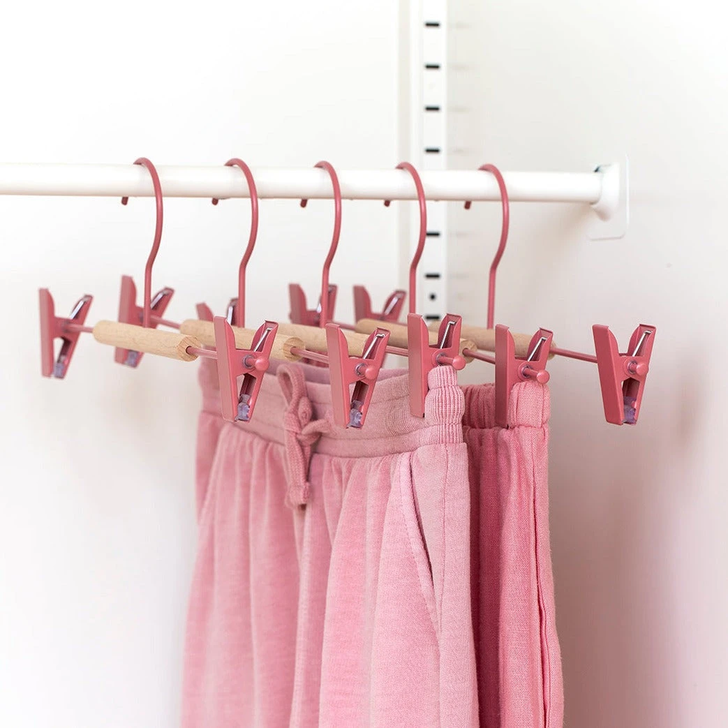 Our fancy clip hangers have a smooth matte powder-coated finish, a wooden detail, and two Clippy clips ready to hold your clothes just right.