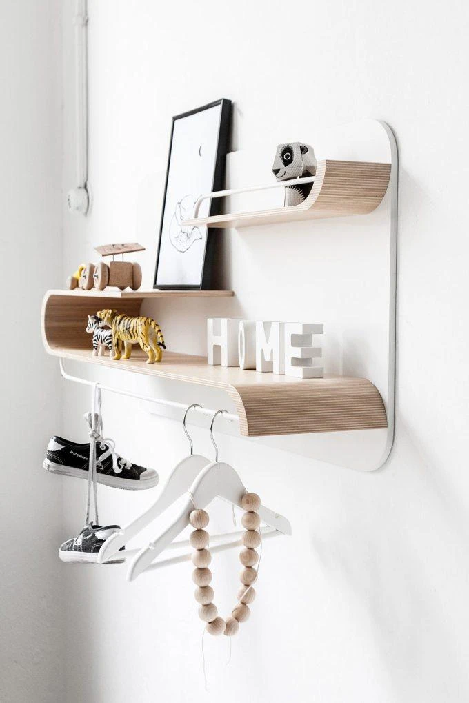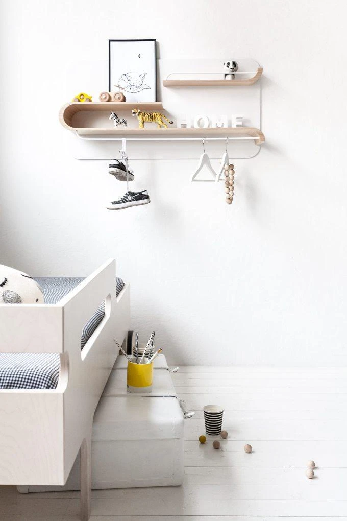In the nursery it’s the perfect place to display photo’s, treasures & trinkets, or to position near the changing station for essential items. Perfect for displaying your favourite outfits. When your little one is a bit older it can be positioned in reaching distance to their bed – a place to put their favourite books or toys, along with their lamp for the night time reading….