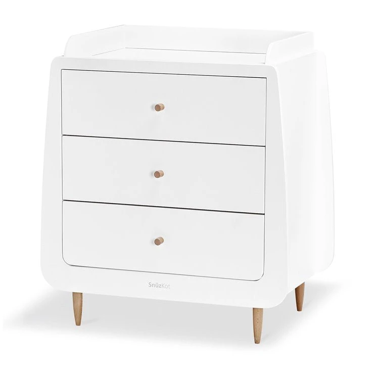 The SnuzKot changing unit features 3 spacious drawers and changing area with a removable frame, ideal for when a baby becomes a toddler and they need a standalone dresser. Changing mat sold separately.