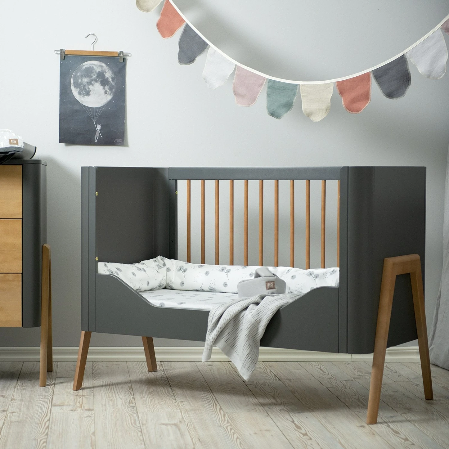 The Troll Nursery Torsten Cot Conversion rails allows your older child to climb in and out of the cot independently. Simply remove one cot side and install the Conversion rail in place. The Grey paint finish co-ordinates perfectly with the rest of the Torsten Range.